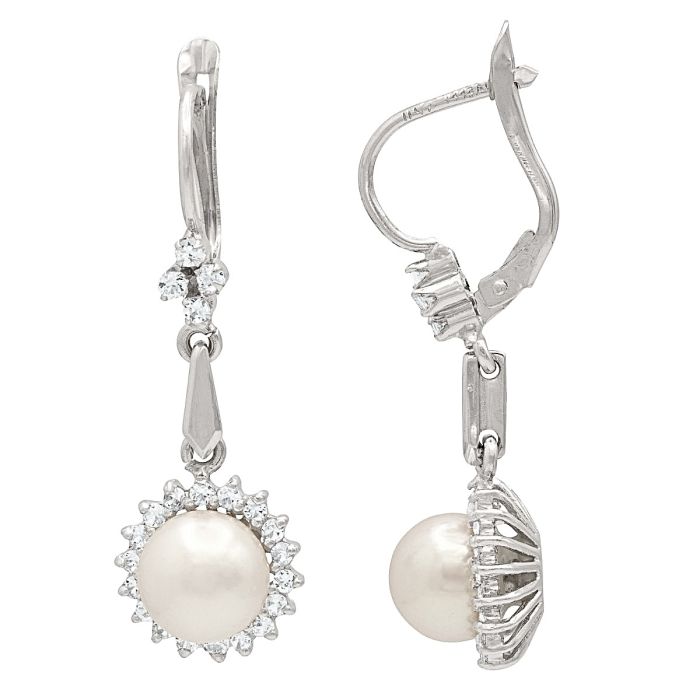 Feminine Weißgold Ohrringe mit Perlen und 44 Zirkonia