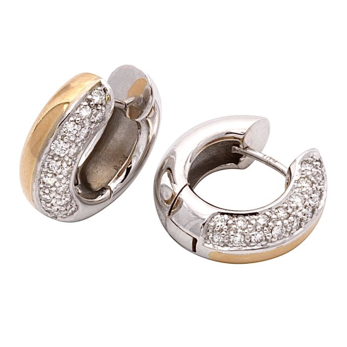 Schauseitig sind sie in hochglänzendem Gelbgold, wobei eine Hälfte komplett mit Brillanten besetzt ist und daher wunderbar funkelt.