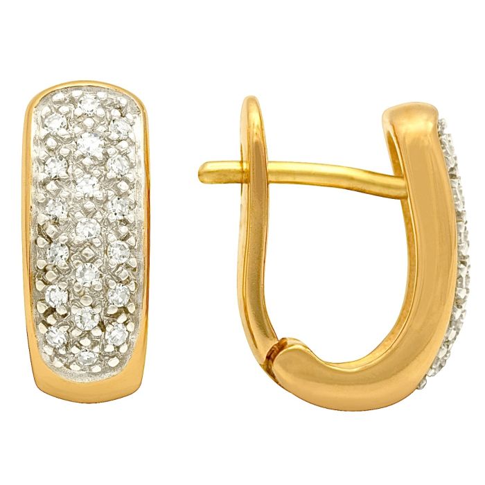 Die Schmuckstücke in geschlossener J-Form mit Stift und Klappscharnier sind schauseitig besetzt mit jeweils 19 Diamanten in rhodinierter Pavéfassung.