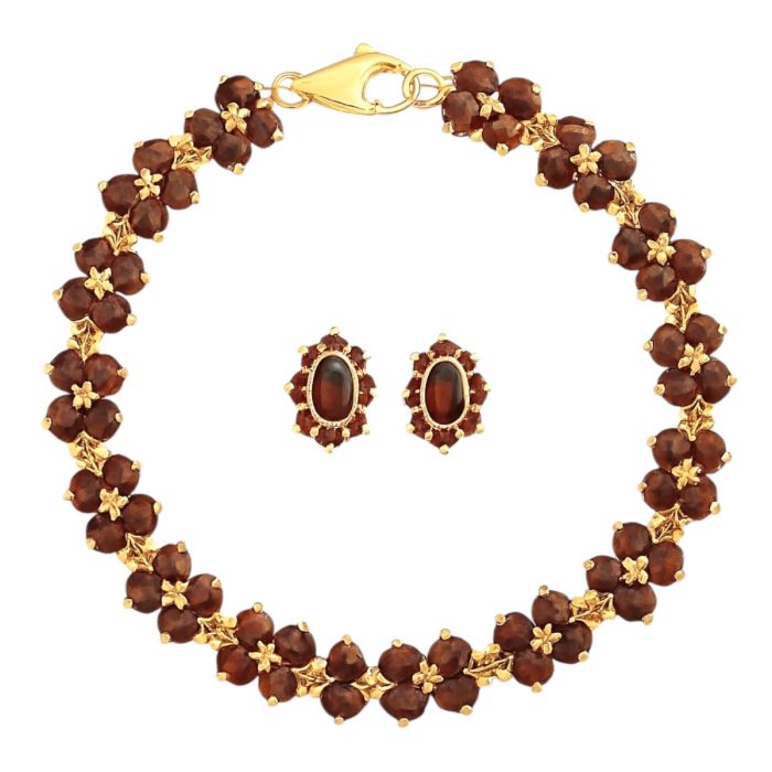 Set – Armband, Anhänger mit Kette, Ohrstecker besetzt mit Granatsteinen