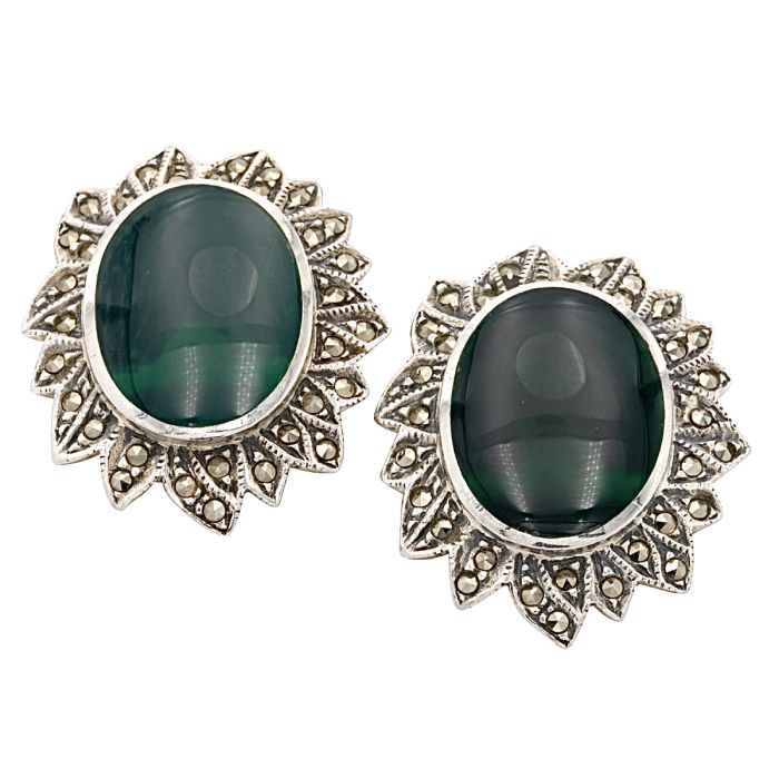 Statement Ohrclips mit synthetischen Malachiten und Markasiten