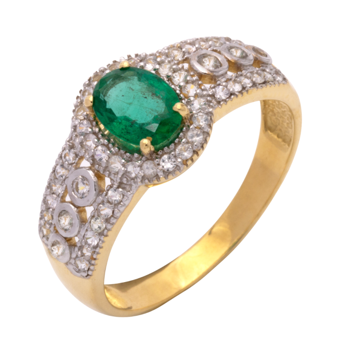 An diesem Ring feiert der Smaragd in einem leuchtendem Grün seinen großen Auftritt. Der auffällige Stein im Ovalschliff steht klar im Vordergrund. Er thront erhöht in der Mitte des Ringes.
