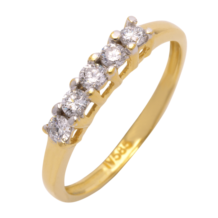Gleich 5 weiße Brillanten zieren den schlanken, glänzenden Ring.