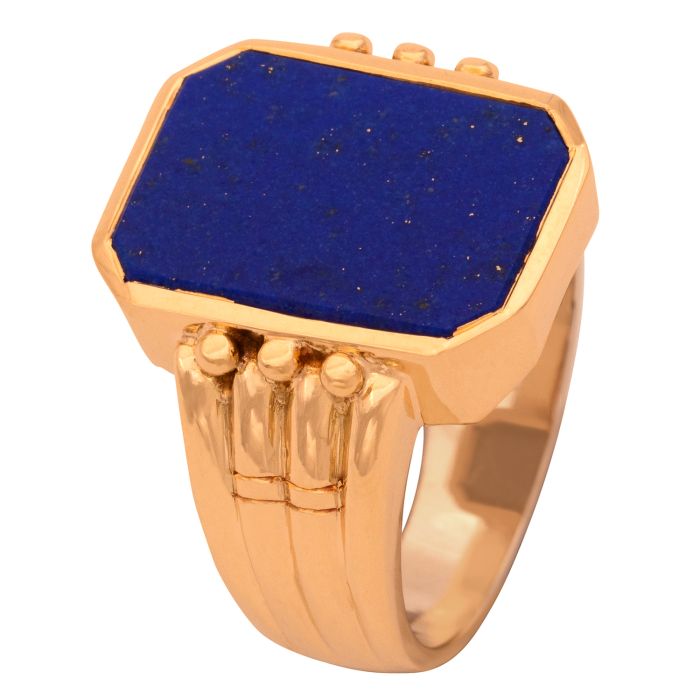 Ein leuchtend blauer Lapislazuli im Achtkantschliff in einer Zargenfassung ist das Highlight des Siegelringes.