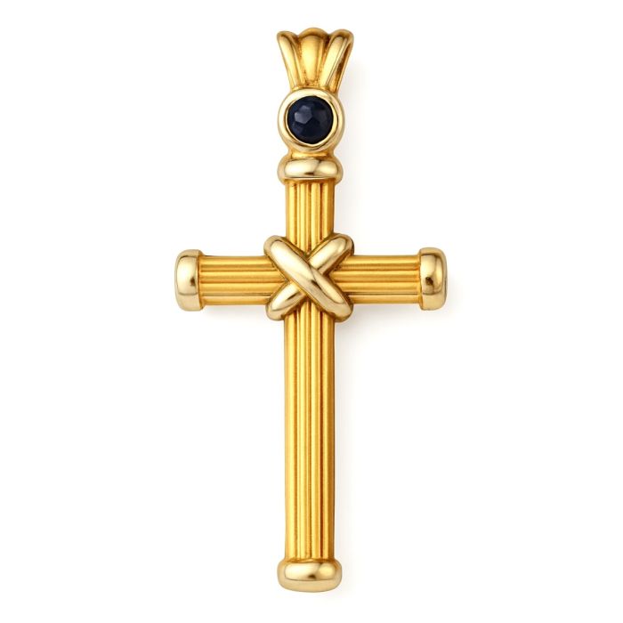 Dekorativer Kreuzanhänger in 14-karätigem Gold.