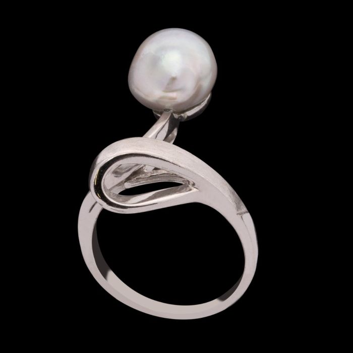 Designer Perlenring in 585er Weißgold