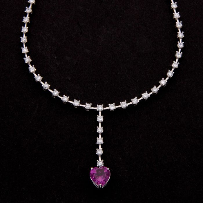 Edles Strass-Collier in 925er Silber mit Herz in Pink