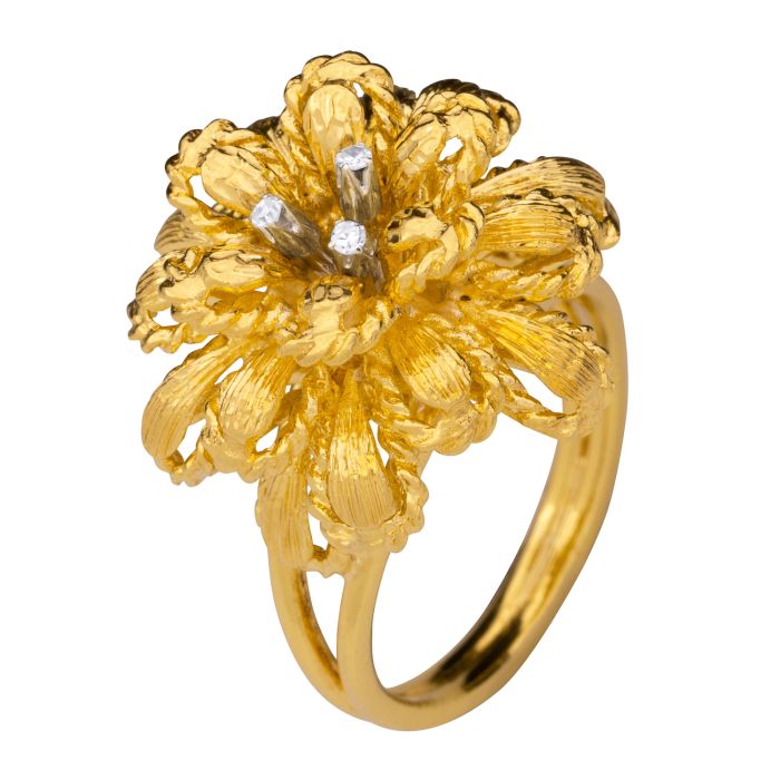 Der Ringkopf stellt eine vollplastisch gearbeitete Blüte dar. Die einzelnen Blütenblätter sind strukturiert gemustert und wirken daher sehr detailgetreu.