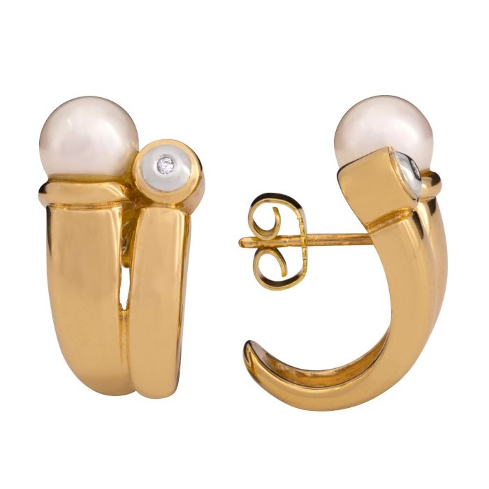 Elegante Ohrstecker in Gelbgold mit Zuchtperlen und Brillanten