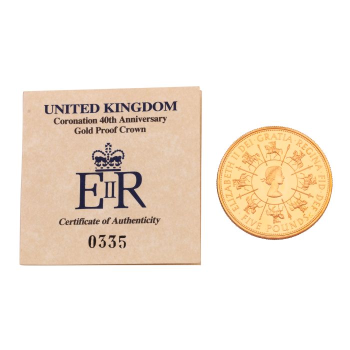 Englische Münze – 5 Pfund - in 22-karätigem Gelbgold.
