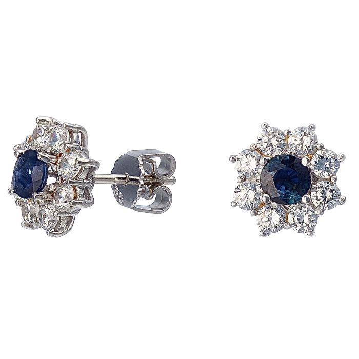 Die blütenartigen Schaustücke sind besetzt mit jeweils einem Saphir und 8 Zirkonia in Krappenfassung.