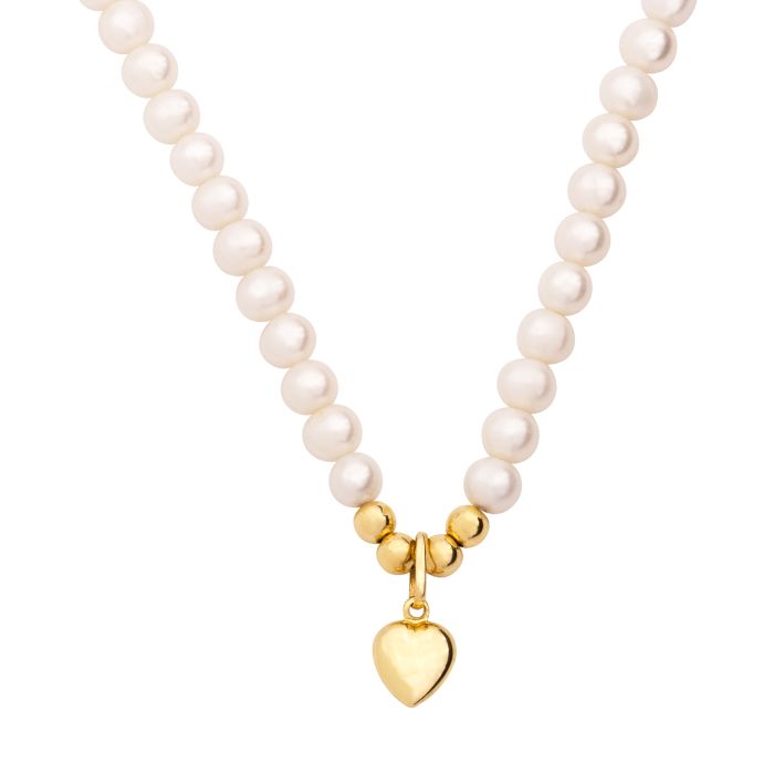 Mittig ziert ein zartes Herz an einer kleinen Öse zwischen jeweils 2 goldenen Kügelchen die Kette.