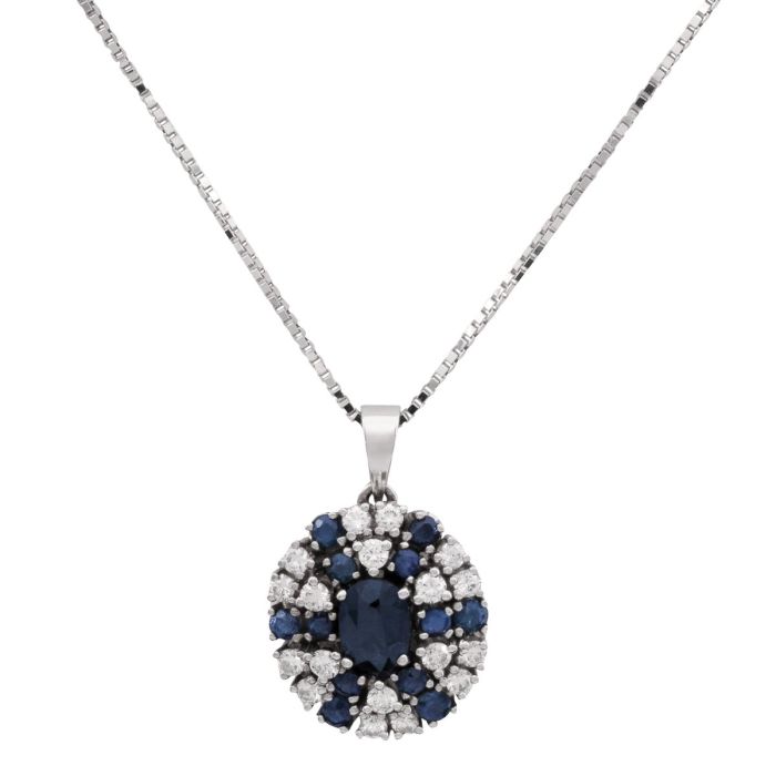 Exklusiver Kettenanhänger mit Saphiren und 18 Brillanten