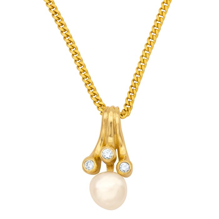 Feiner Anhänger mit Brillanten und Zuchtperle – Flachpanzerkette