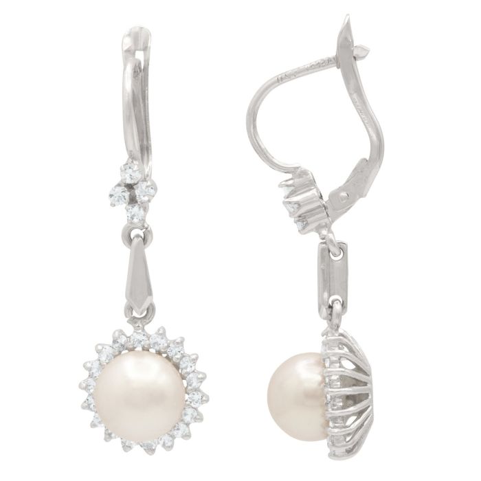 Feminine Weißgold Ohrringe mit Perlen und 44 Zirkonia