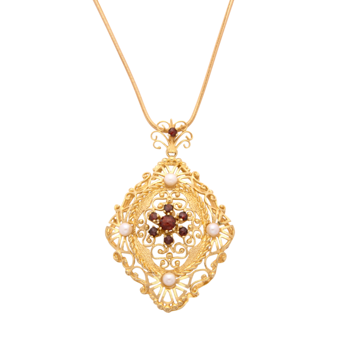 Filigran gearbeiteter Anhänger im Antikstil mit Kette