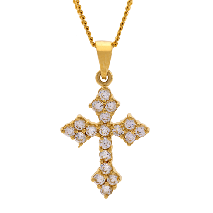 Funkelnder Kreuzanhänger in 14 karätigem Gelbgold.