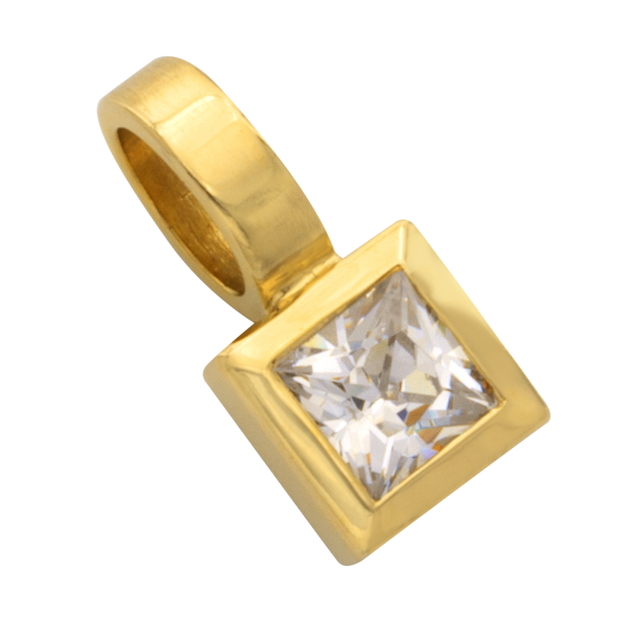 Der Kettenanhänger aus 8 karätigem Gelbgold hat eine quadratische Form.