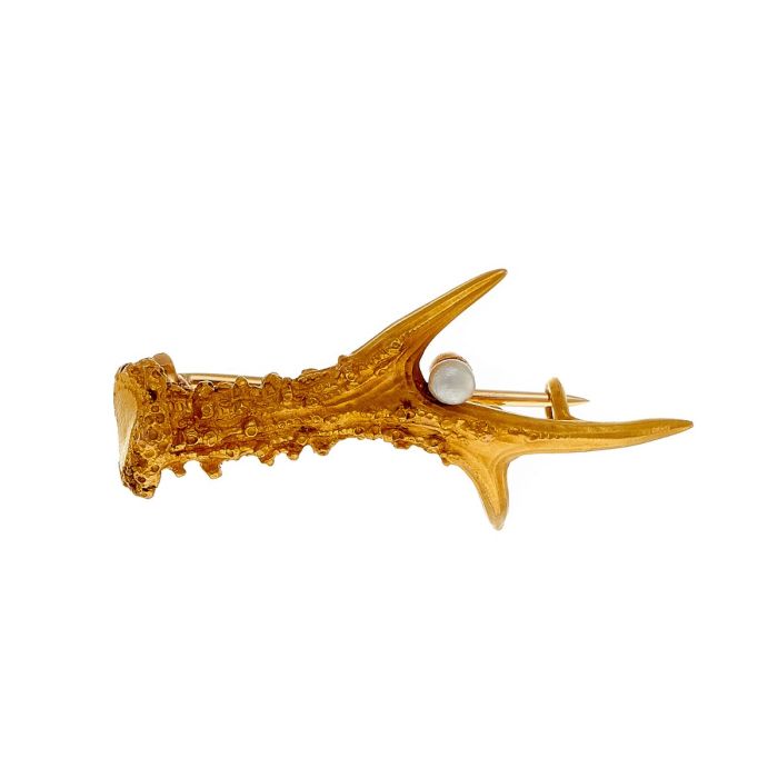 Wunderschöne Anstecknadel in Form eines Geweihes in 14-karätigem Gelbgold.