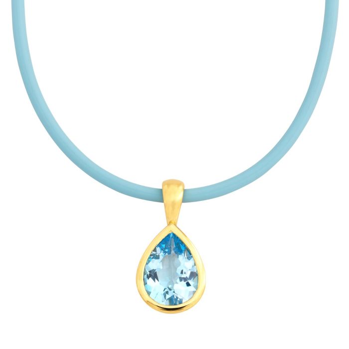 Goldgefasster Blautopas in Tropfenform mit Silikonkette