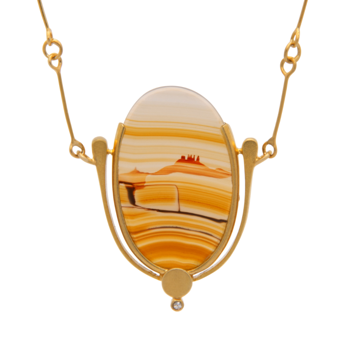 Exquisiter Halsschmuck, welcher einen wunderschönen Streifenachat fasst.
