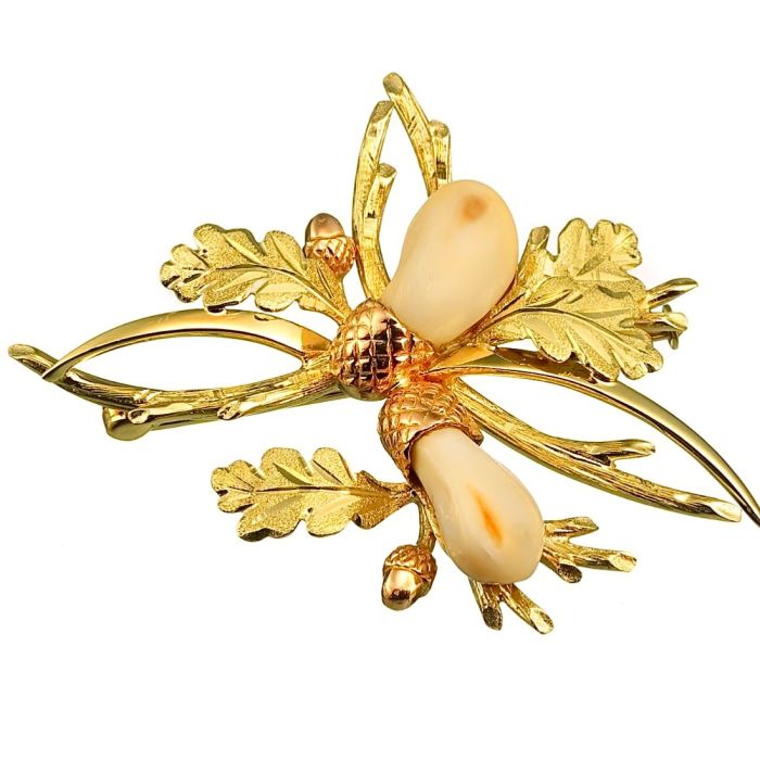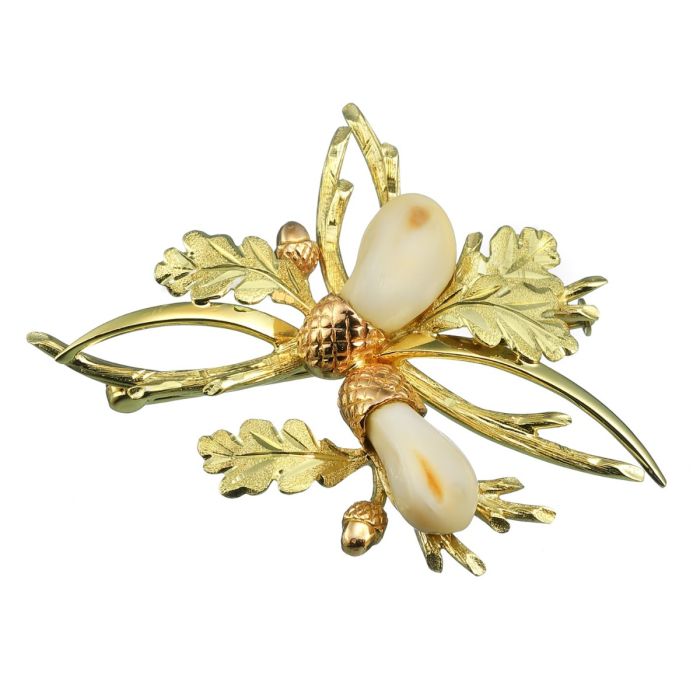Die floralen Formen der Äste sowie das filigran dargestellte Eichenlaub veredeln das Schmuckstück.