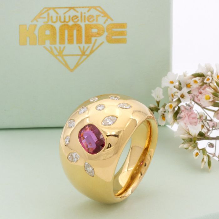 Goldschmiedekunst - Massiver Damenring mit Brillanten, Diamanten und Rubin