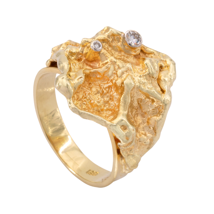 Handarbeit. Exklusiver Damenring in 14 karätigem Gelbgold.