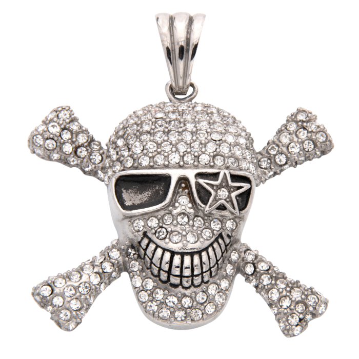 Rockiger Totenkopf-Anhänger in Edelstahl mit Zirkonia