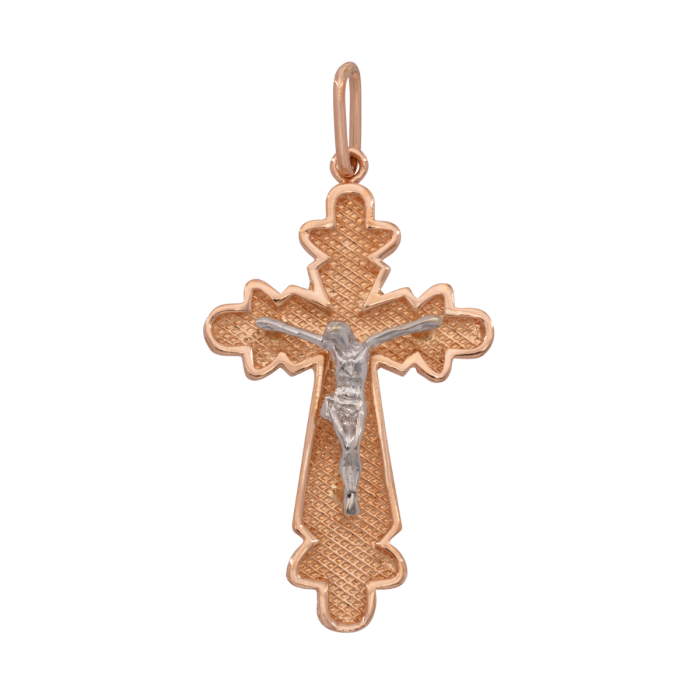 Das roségoldene Kreuz hat eine strukturierte Fläche.