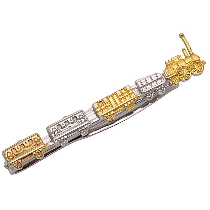 Originell dargestellte Krawattenklemme in Form eines Zuges in 925er Sterlingsilber.