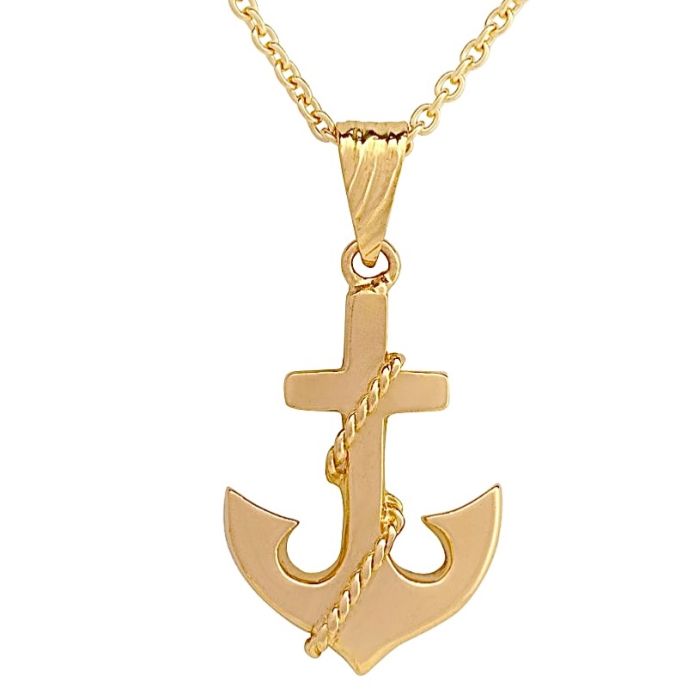 Unisex Anhänger in 18 karätigem Gelbgold in Form eines Ankers mit einem Tau umwickelt.