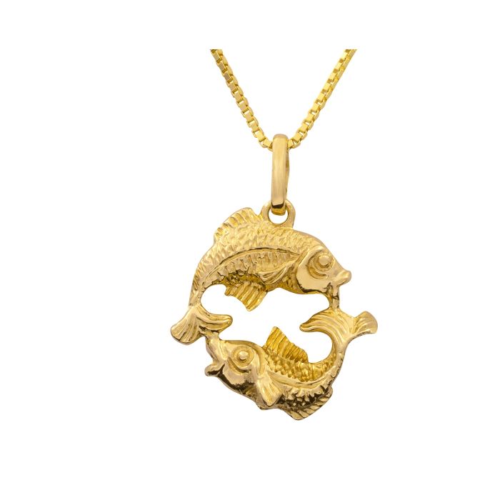 Kettenanhänger in Form von 2 Fischen in 14 karätigen Gelbgold.