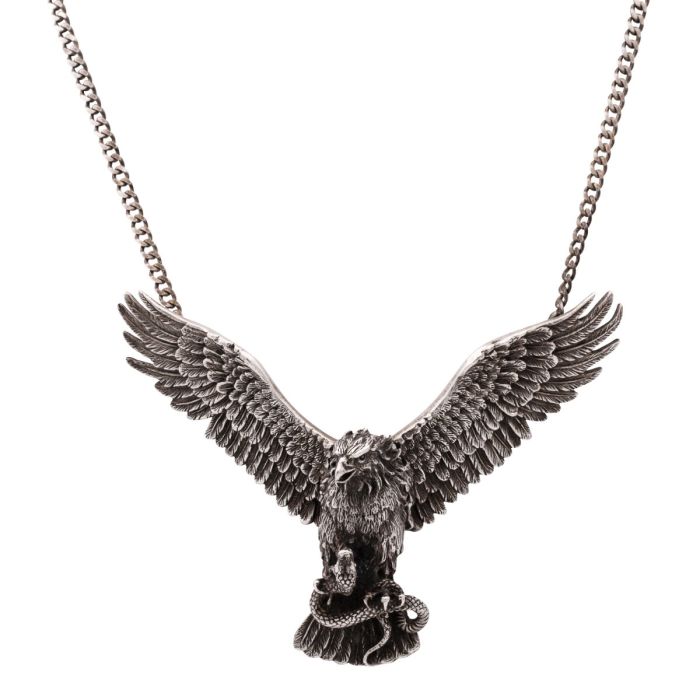 Massiver Halsschmuck mit Greifvogel als Anhänger