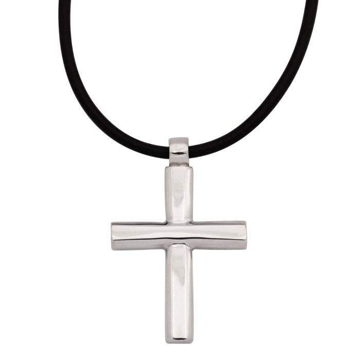 Silberner Kreuzanhänger mit Lederkette