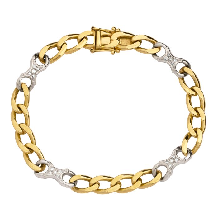 Flachpanzerarmband mit diamantbesetzten Zwischengliedern