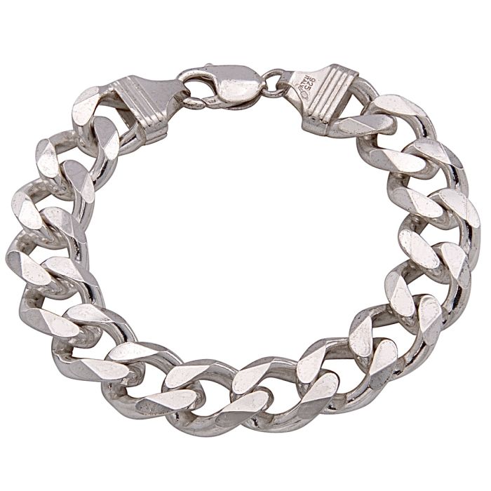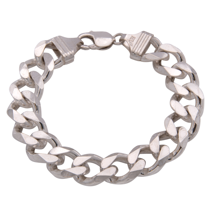Armband für Herren aus 925er Silber. Das Schmuckstück ist in Italien gefertigt wurden. Es hat eine massive Flachpanzergliederung. Ein Karabiner dient als Verschluss.