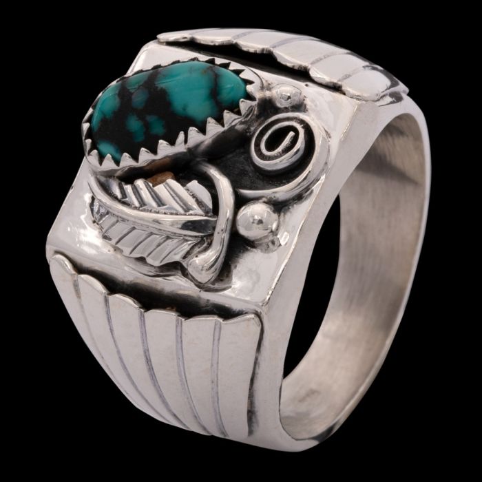 Der Ringkopf ist quadratisch gearbeitet und in einen schönen reliefierten Dekor eingebettet.