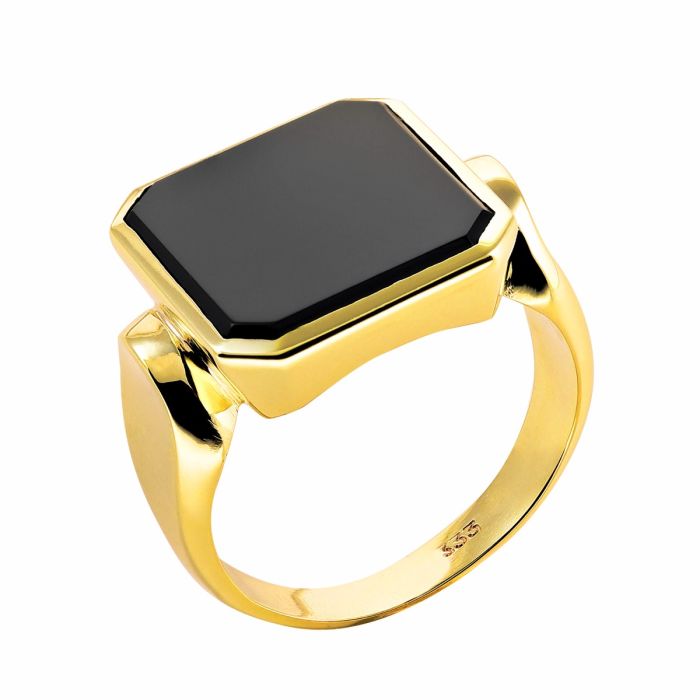 Herrenring mit breiter konkaver Ringschulter in ovaler Form, den konischen achteckigen Ringkopf flankierend, der eine achteckige Onyxplatte fasst, ungraviert.