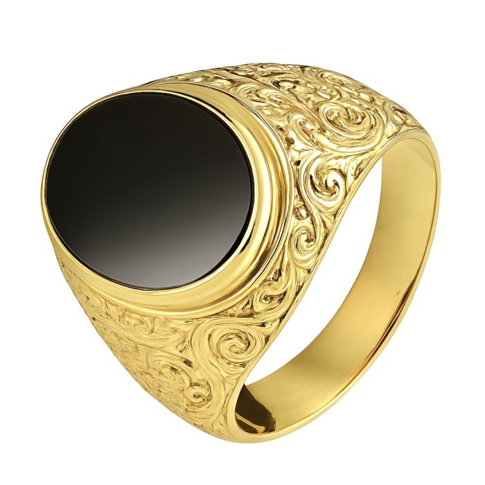 Die ovale schwach gewölbte Onyxscheibe ist erhöht gefasst in einem Zargenrahmen.