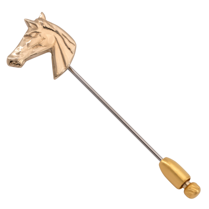 Das Schmuckstück hat ein Schaustück, welches einen Pferdekopf darstellt.