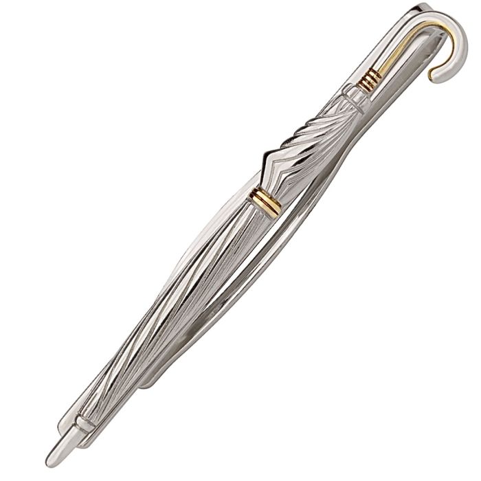 Witzige Krawattenklemme in Form eines geschlossenen Regenschirmes in 925er Silber.