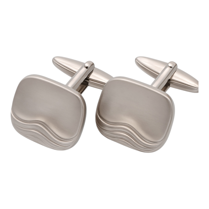 Das wellenförmige Dekor am Rand lockert die sonst schlichten Schaustücke der Manschettenknöpfe auf und verleiht ihnen das gewisse Etwas.