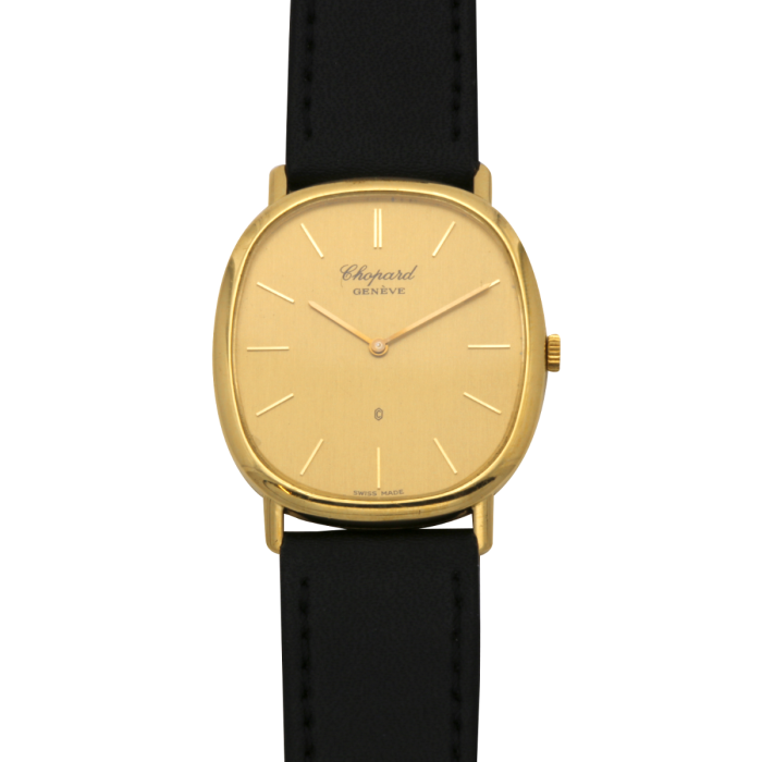 Klassische Herrenuhr in 750er Gold von CHOPARD mit Quarzwerk und Lederband