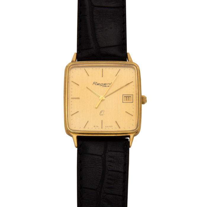 Stilvolle Herrenuhr in 585er Gold der Marke REGENT mit Lederband
