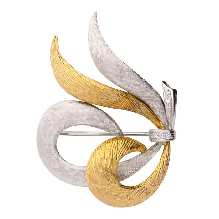 Hochwertige Bicolor Brosche der 50er Jahre in 18-karätigem Gold.