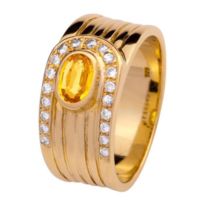 Kannelierter Bandring mit Citrin und Brillanten