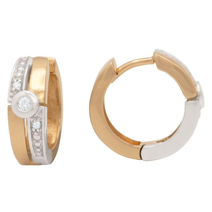 Schauseitig sind die Schmuckstücke besetzt mit je einem kleinen Brillanten von ca. 0,02 ct. und zusätzlich je 2 Diamanten, welche im weißgoldenen Teil der Creolen sitzen.