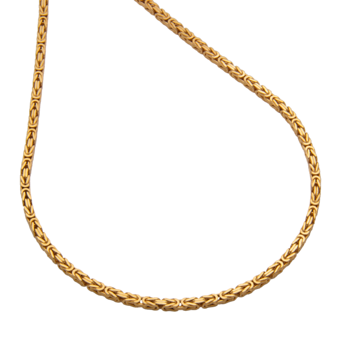Die Unisexkette in 333er Gelbgold setzt sich mit ihrer polierten Oberfläche und der Königskettengliederung stilvoll ins Bild.