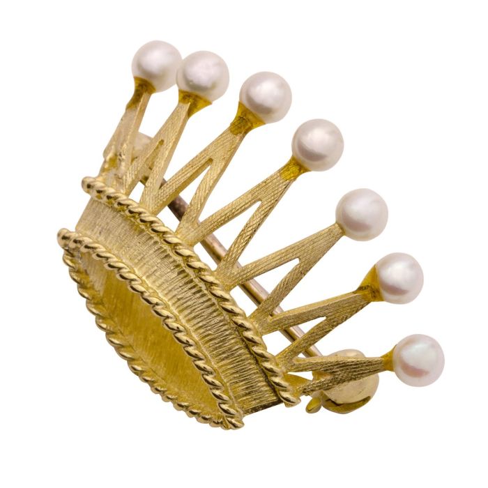 Hübsche Brosche in Form einer Krone in 14 karätigem Gelbgold.